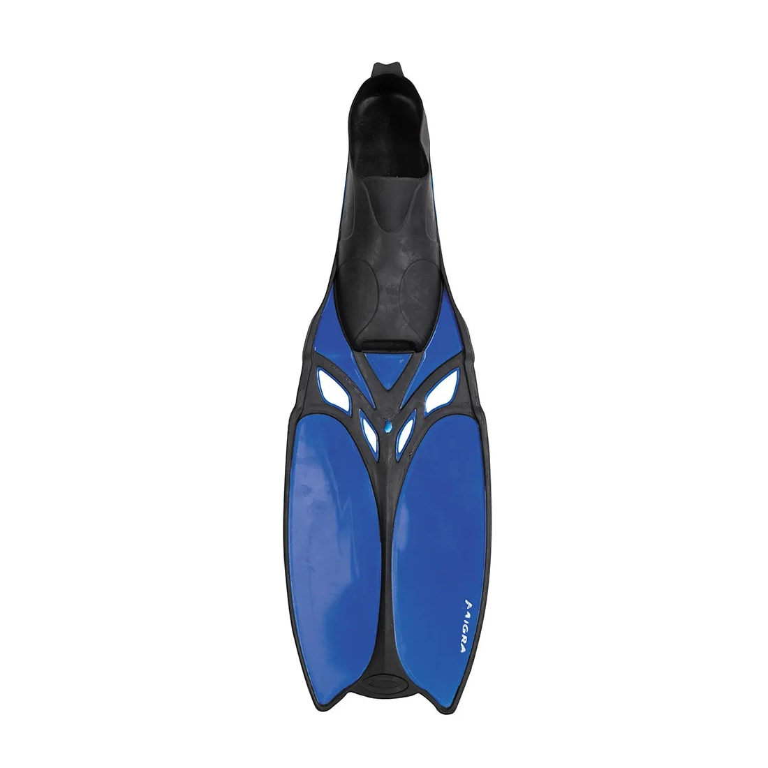 The BlueWave Migra 37/38 fins are closed‑heel snorkeling fins featuring a soft, comfortable foot pocket and a durable polypropylene blade for efficient propulsion. Reinforced side ribs enhance stability and power transfer, making them ideal for recreational snorkeling and general water activities.