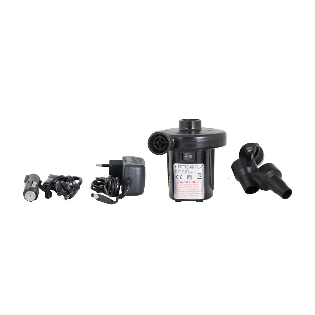 The 12/220V Air Pump – 250 L/min is a compact and versatile electric pump designed for fast inflation and deflation of air mattresses, inflatable boats and outdoor gear. Operating on both 12V and 220V, it is ideal for home, car and camping use. With 135 L/min airflow, 0.5 psi pressure and 50 W power, it delivers efficient performance for all types of inflatables.