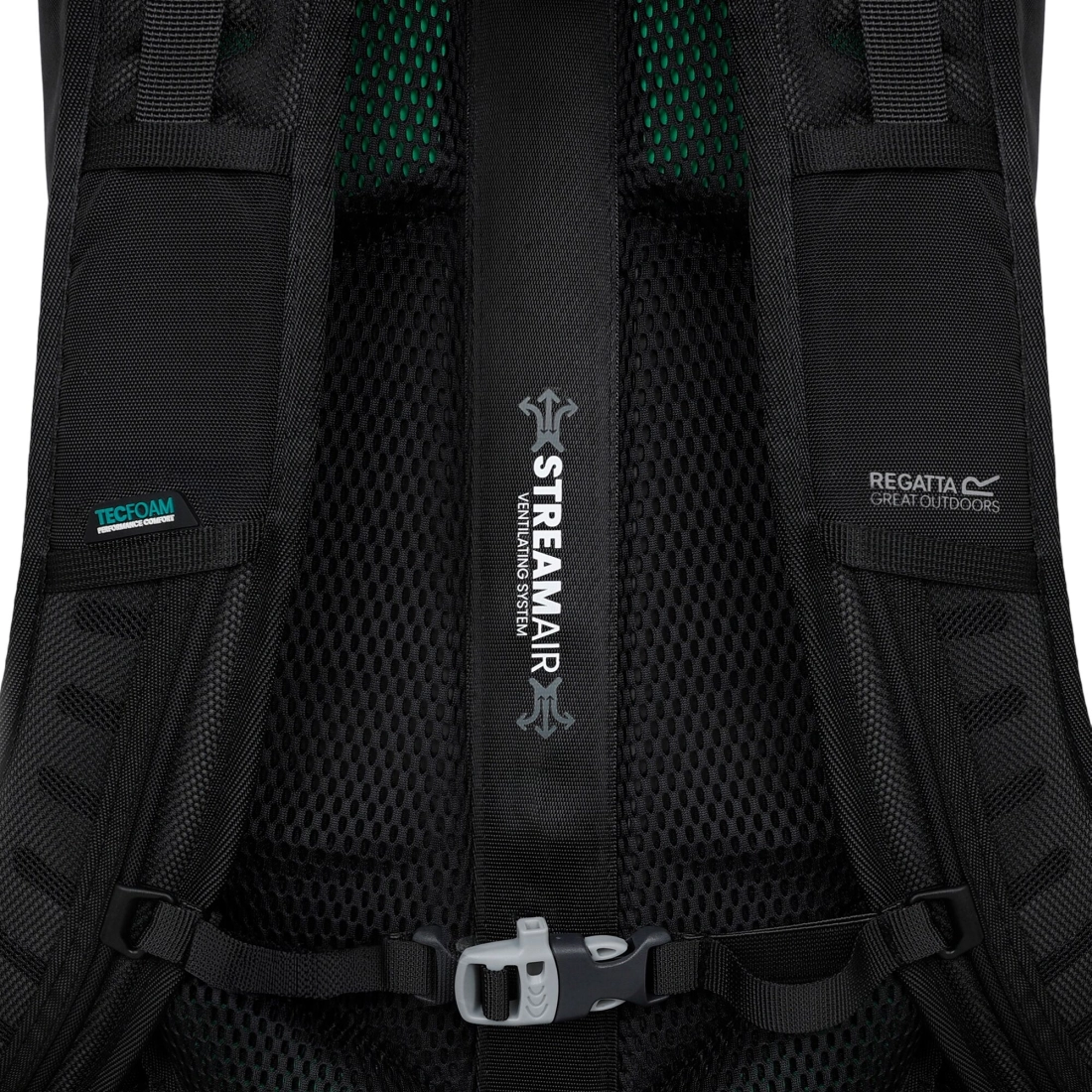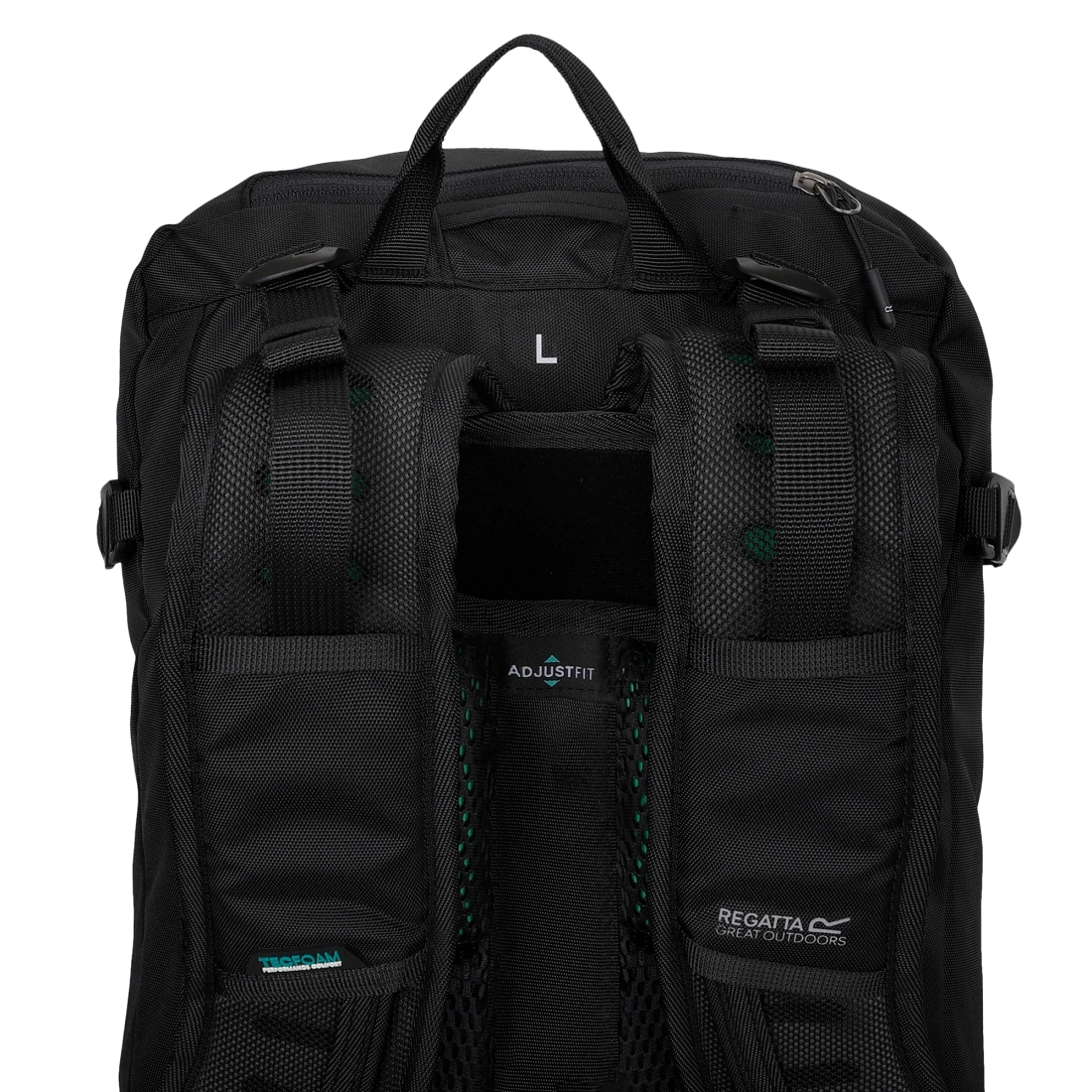 The Regatta Blackfell IV 35L Backpack (Black) is built for confident days on the trail, featuring lightweight 210D ripstop and 600D polyester with a PFC‑free water‑repellent finish. The AdjustFit carry system allows customizable back length, while TECFoam padding, StreamAir ventilation channels and ISOVENT Air Mesh ensure comfort and airflow. With hydration compatibility, hip‑belt pockets, dual‑zip panel access and a detachable rain cover, it offers versatile storage and performance for hiking and fast‑moving adventures.