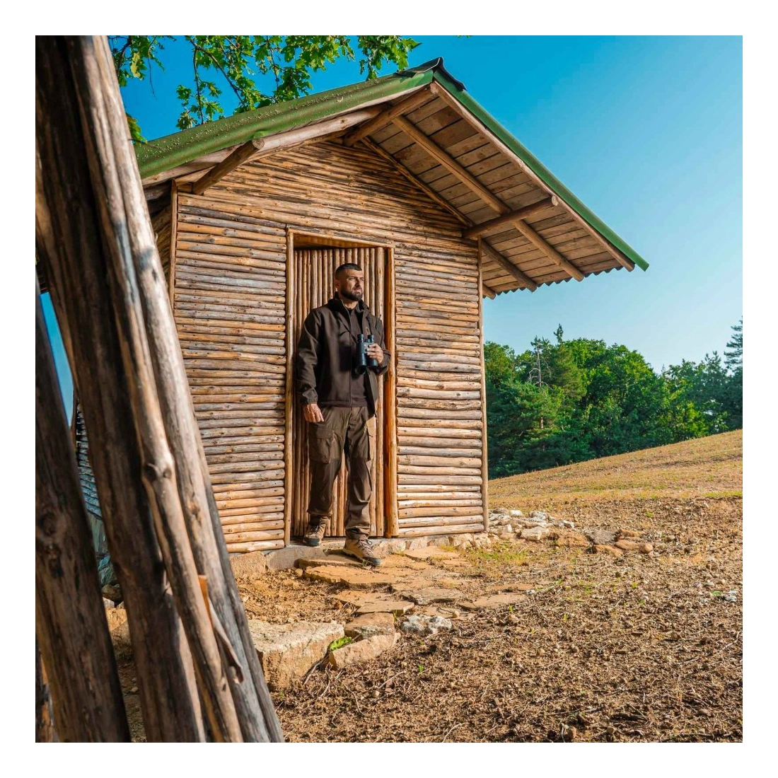 The Chameleon FEAE Brown Softshell Jacket is a premium hunting jacket made from elastic soft shell fabric with Teflon™ DWR coating, offering water repellency, durability and complete freedom of movement. Built from 100% silent fabric in brown color, it remains undetectable in nature while providing comfort, weather protection and mobility. FEAE ensures year‑round thermal comfort, functioning as an outer layer in transitional seasons or a mid‑layer in harsher conditions. The stretchable soft shell fabric is highly durable, resistant to wear and frequent washing, making it ideal for hunting, fishing, hiking and active everyday use. The adjustable waist and three functional pockets (two warm hand pockets and one upper radio pocket) enhance practicality. The jacket features taped SBS® zippers, an external antenna exit and an internal headphone channel — essential details for the modern hunter.