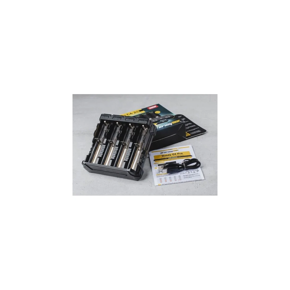 The Handy C4 Pro is a four‑slot portable charger designed for safe and efficient charging of multiple battery types. Its 2.5A Powerbank function supports mobile devices, including iPhone & iPad, while the smart power management system draws energy from any number of active channels for maximum efficiency.